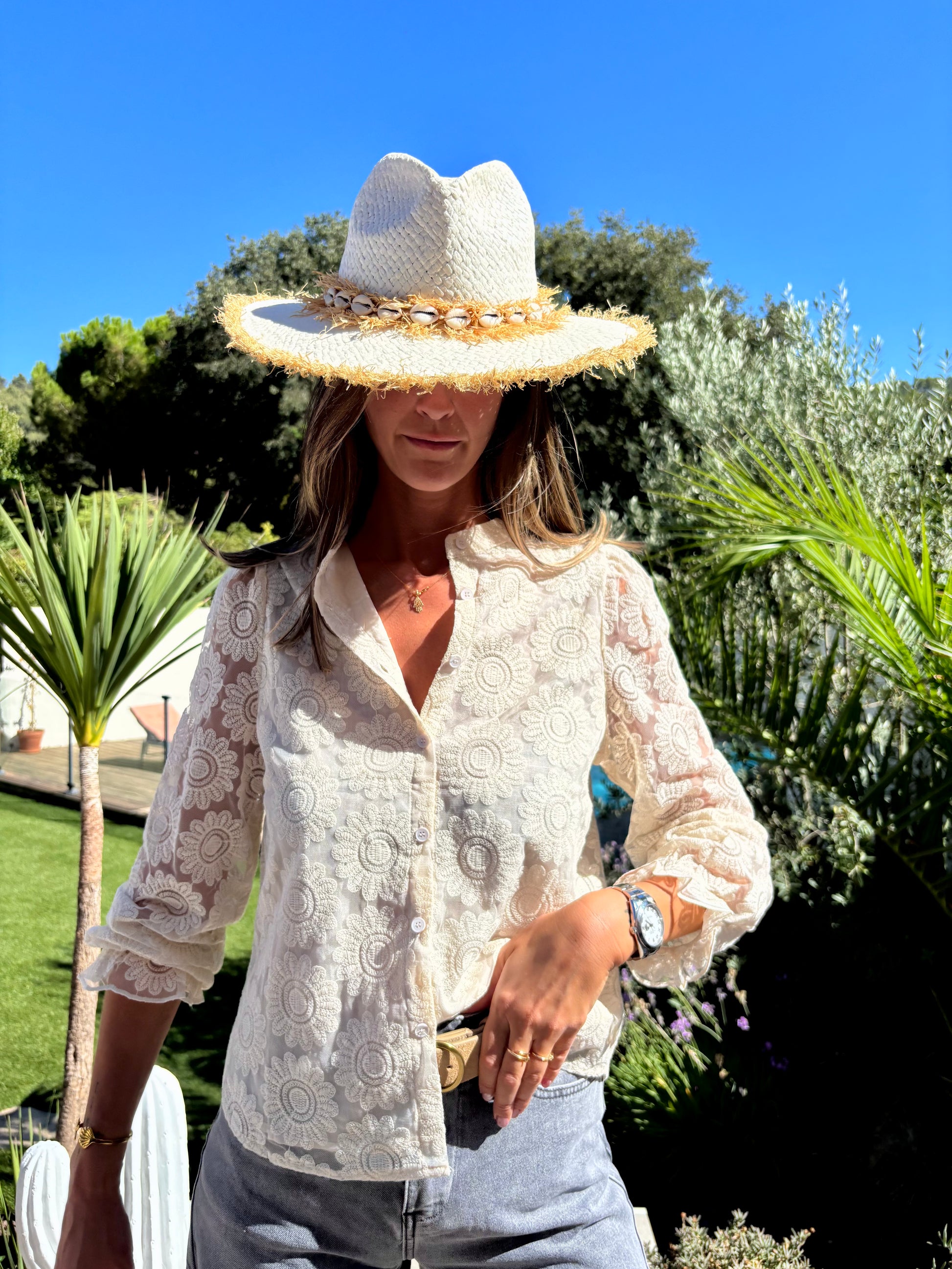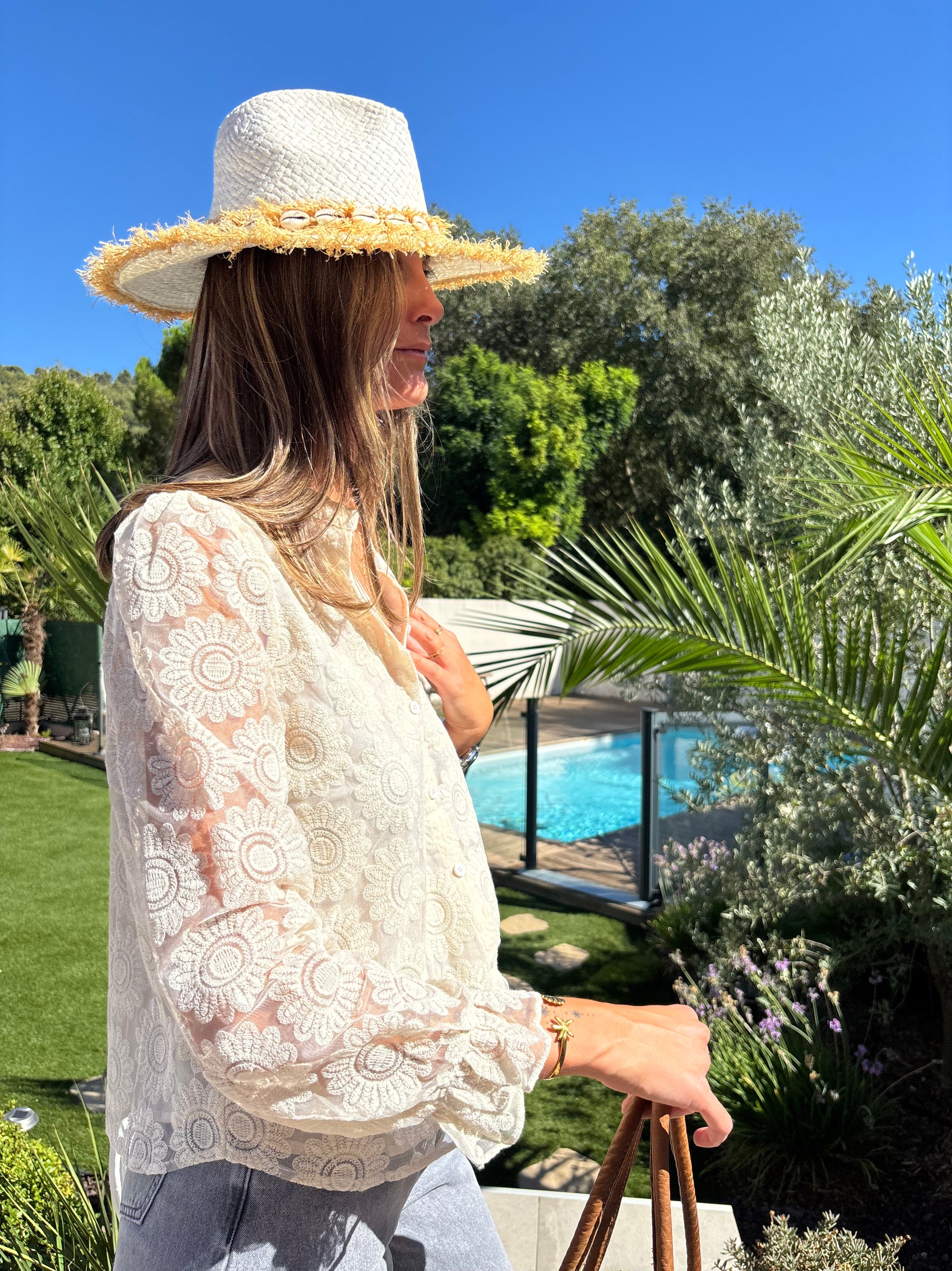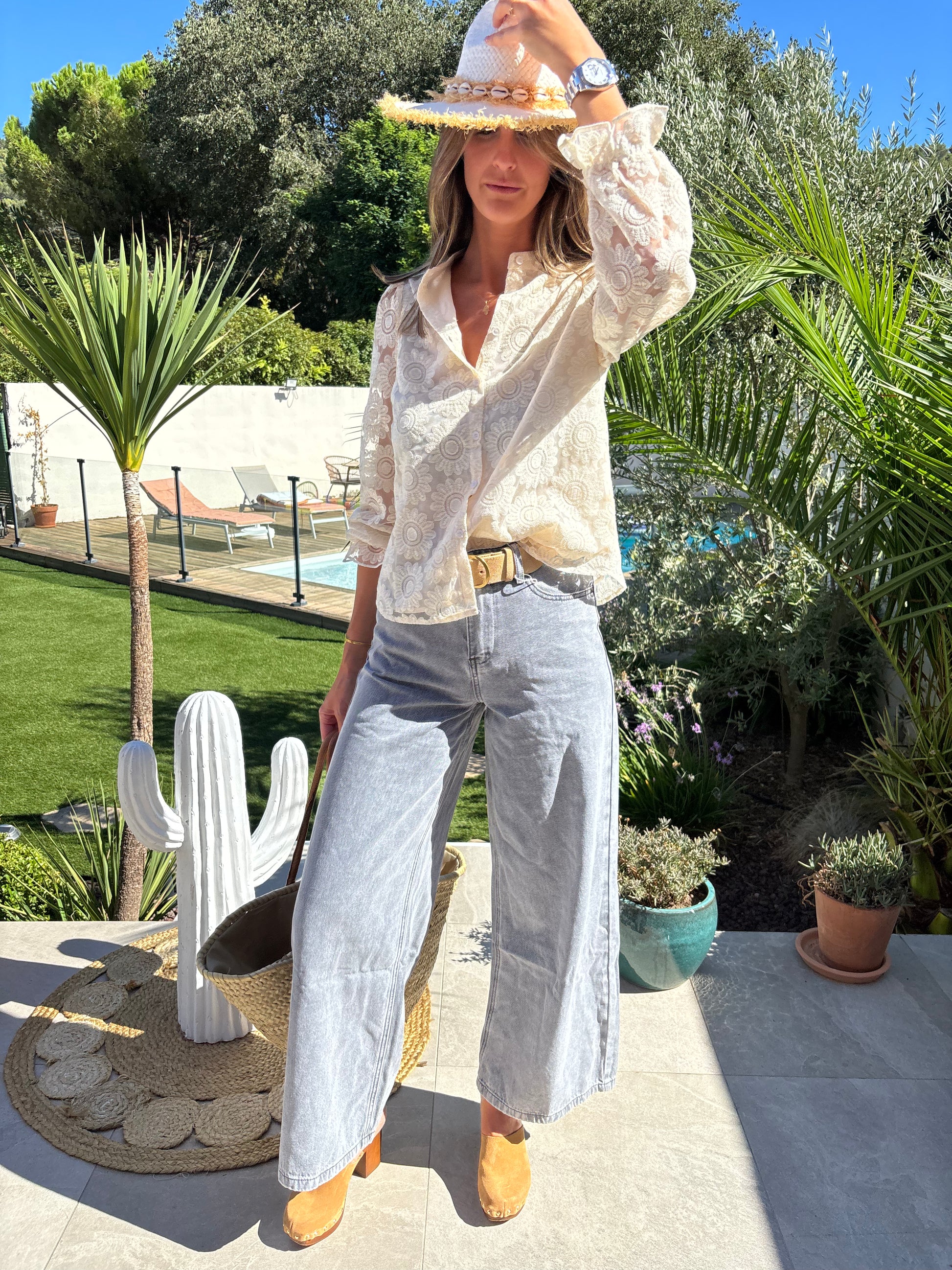 Sublimez vos looks estivaux avec cette magnifique chemise en dentelle qui allie féminité et élégance décontractée.