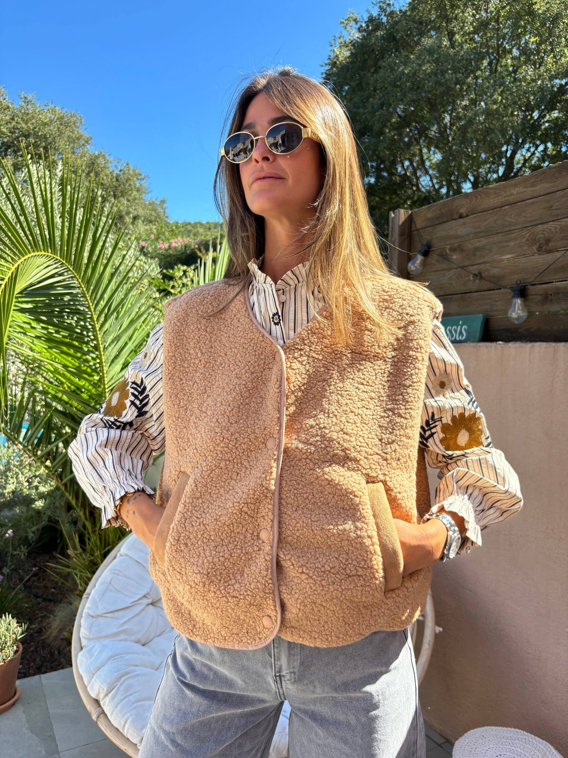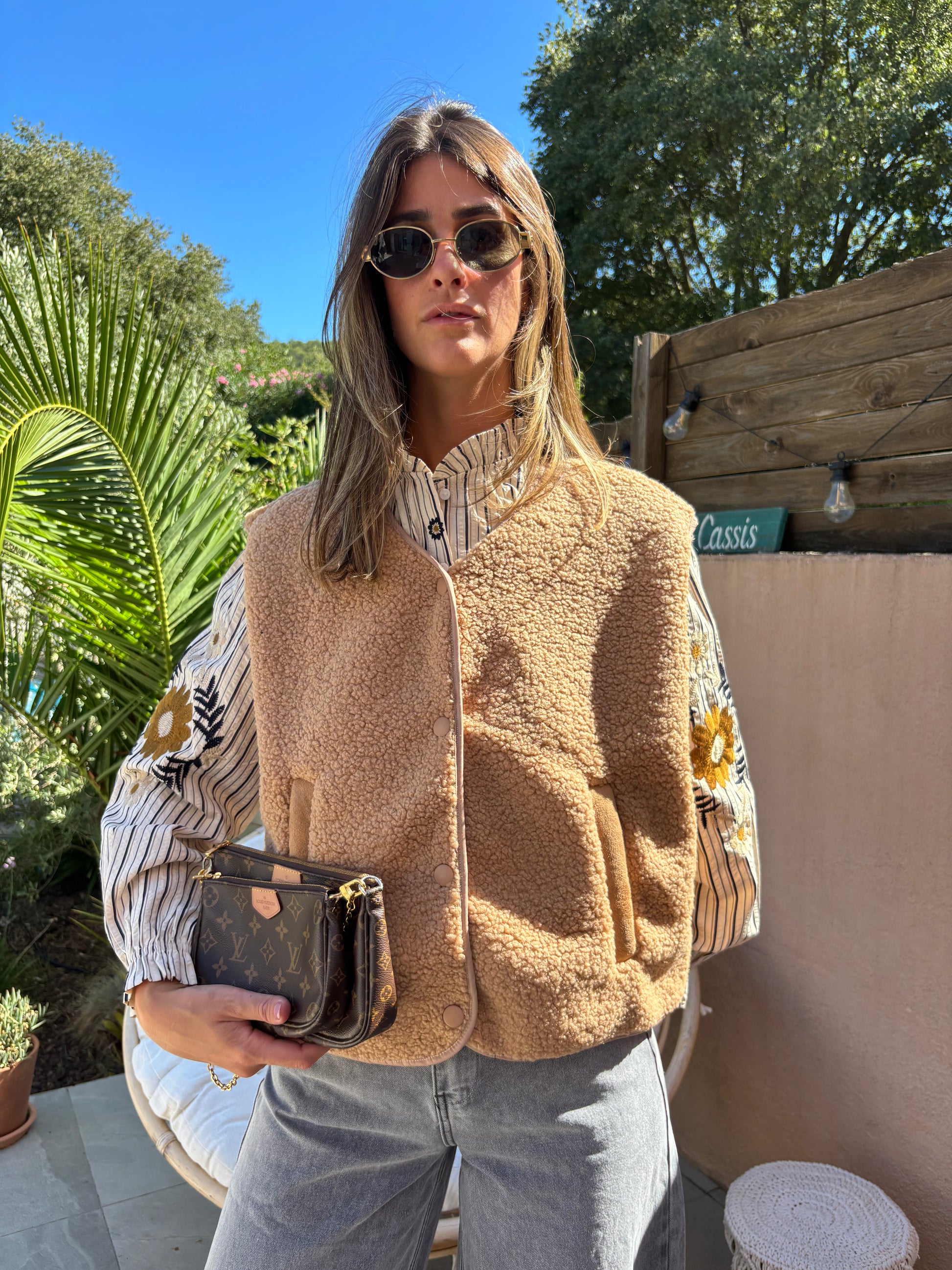 Adoptez la tendance cocooning avec ce gilet sans manches ultra-doux qui apporte chaleur et style à vos looks !