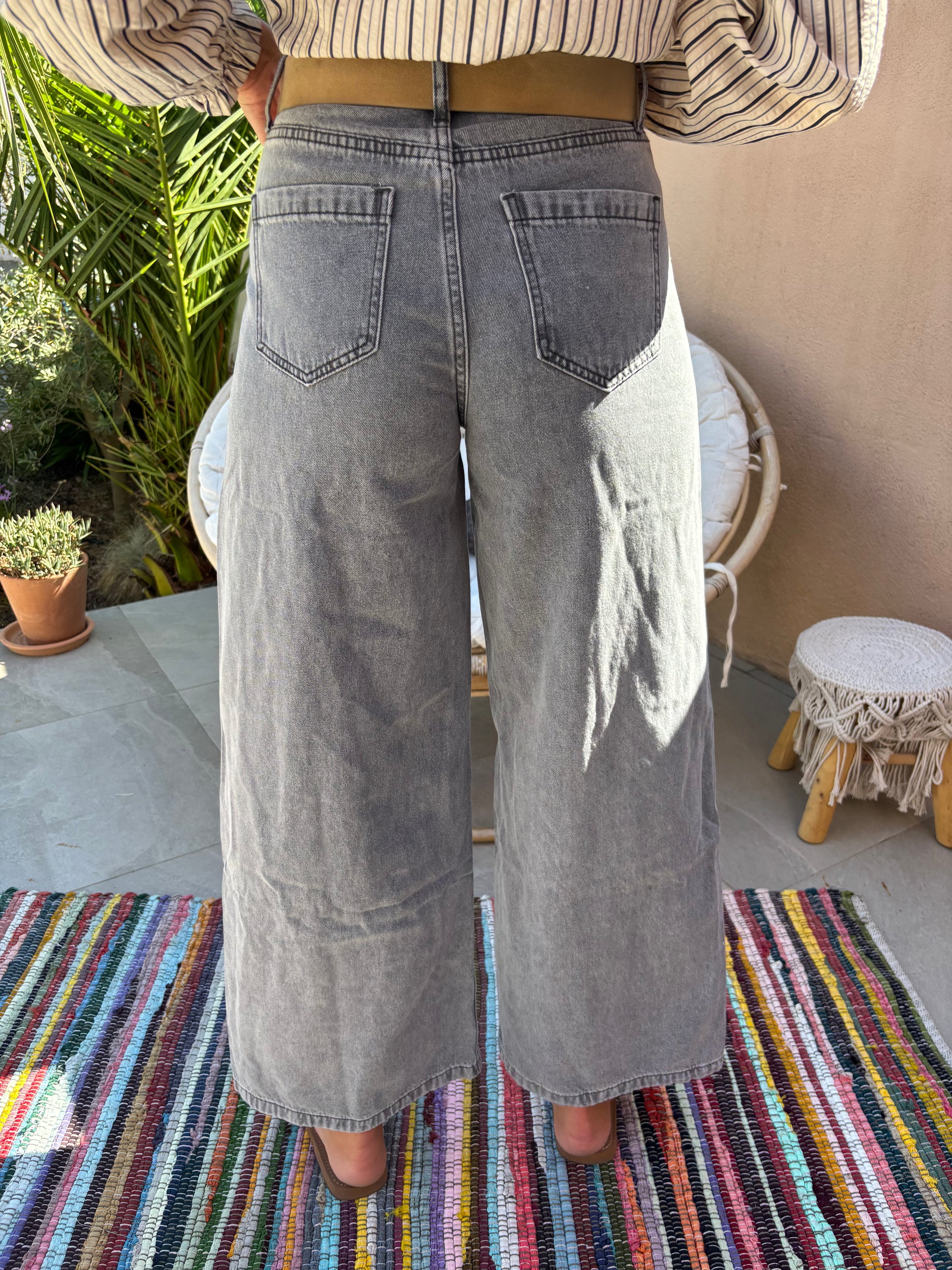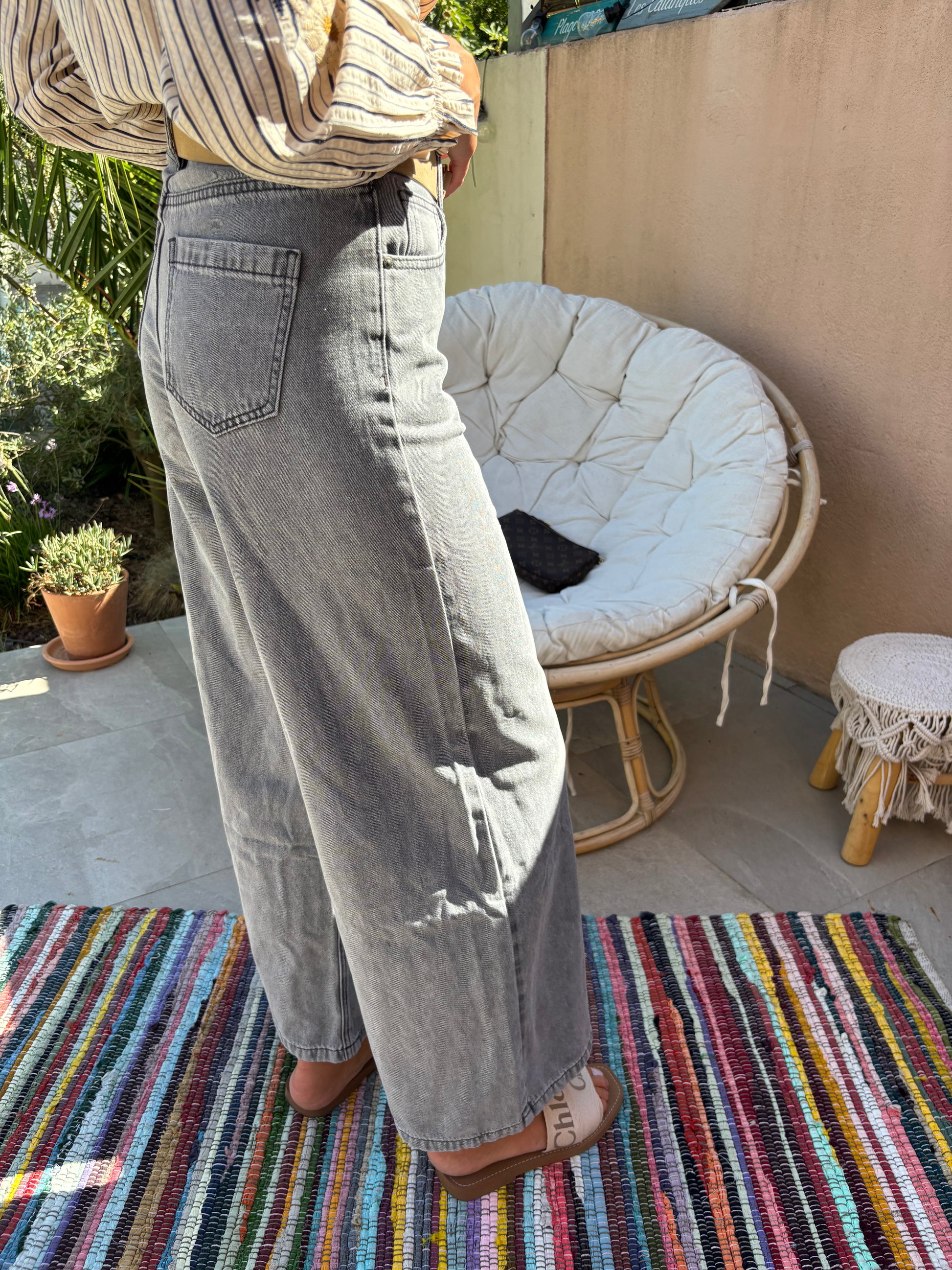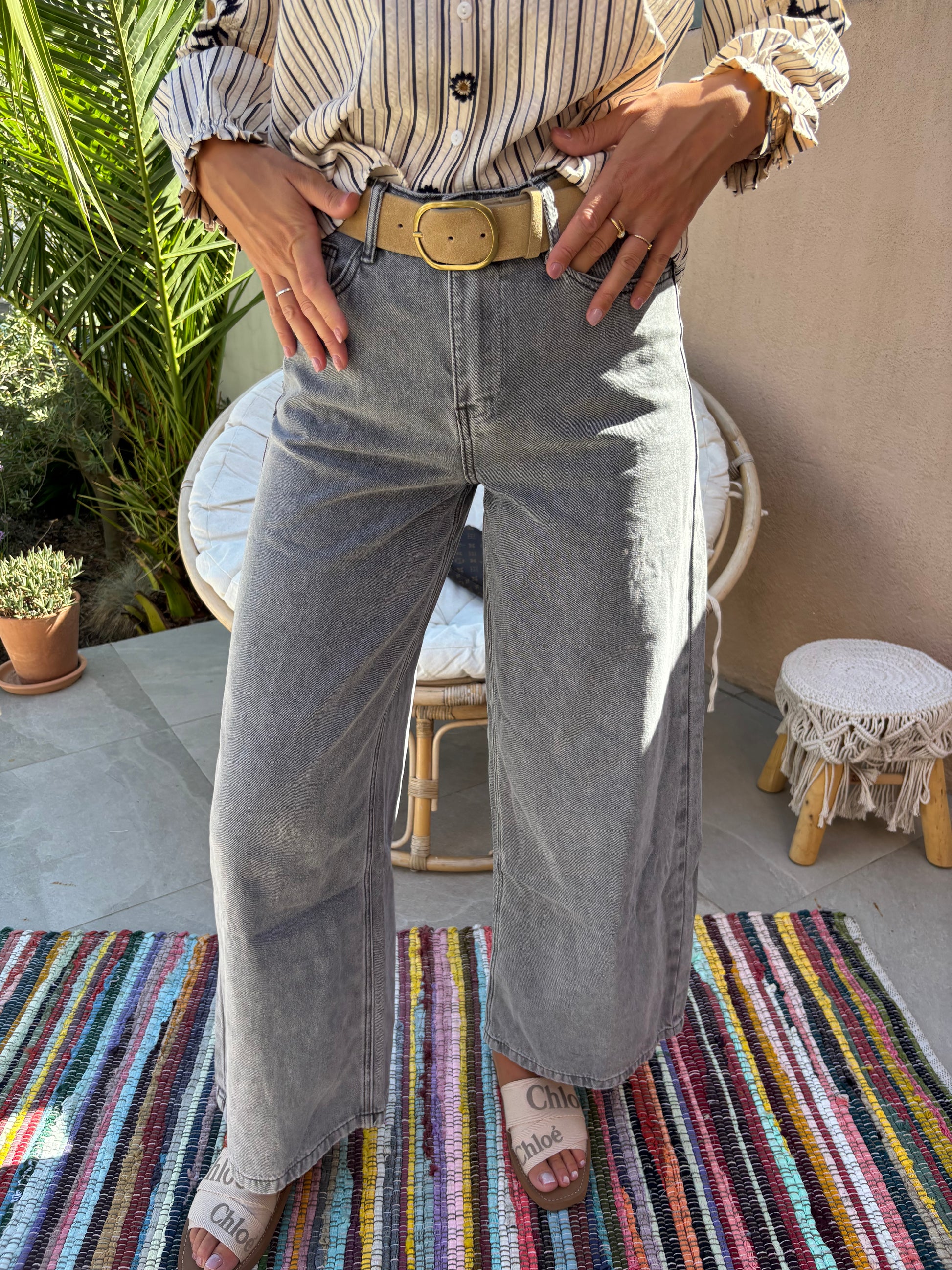 Craquez pour ce jean au style vintage remis au goût du jour ! Ce pantalon en denim gris clair apporte une touche rétro-chic à votre garde-robe.