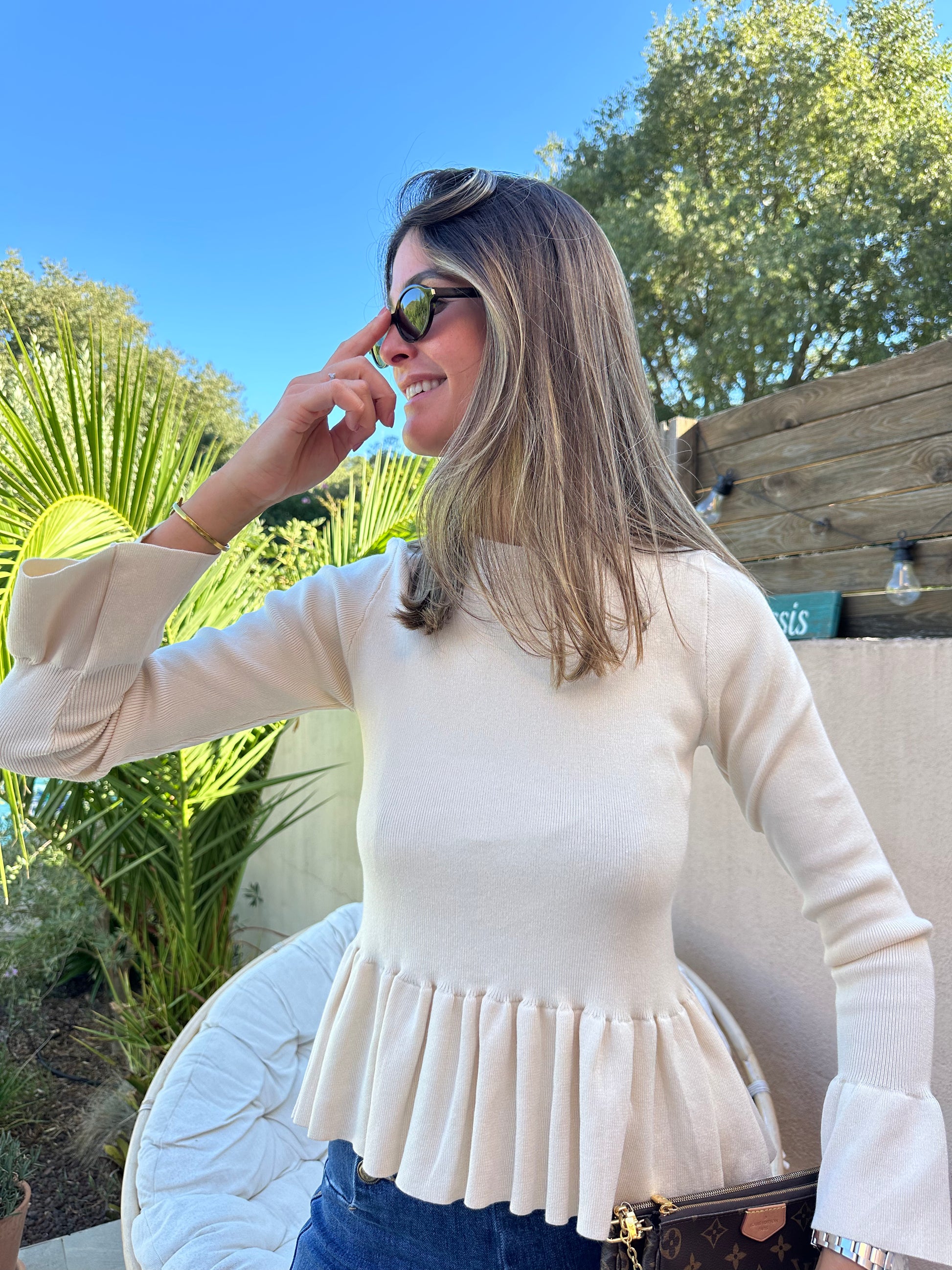 Tombez sous le charme de ce pull sophistiqué qui revisite le tricot classique avec une touche ultra-féminine. Cette pièce coup de cœur apporte instantanément une note romantique et moderne à votre garde-robe.