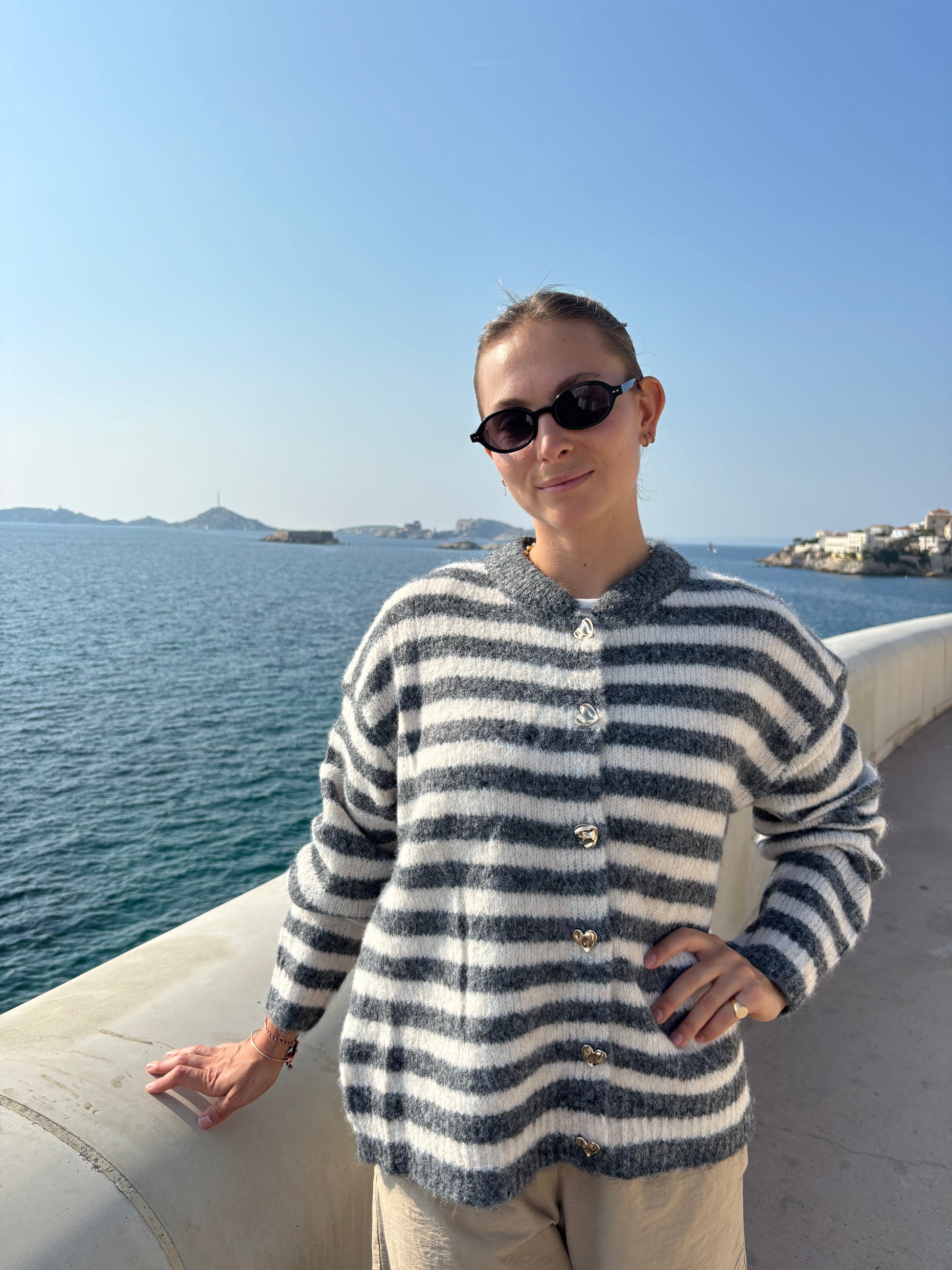 Pull cocooning ultra-doux, revisitant le classique marinière dans une version sophistiquée.