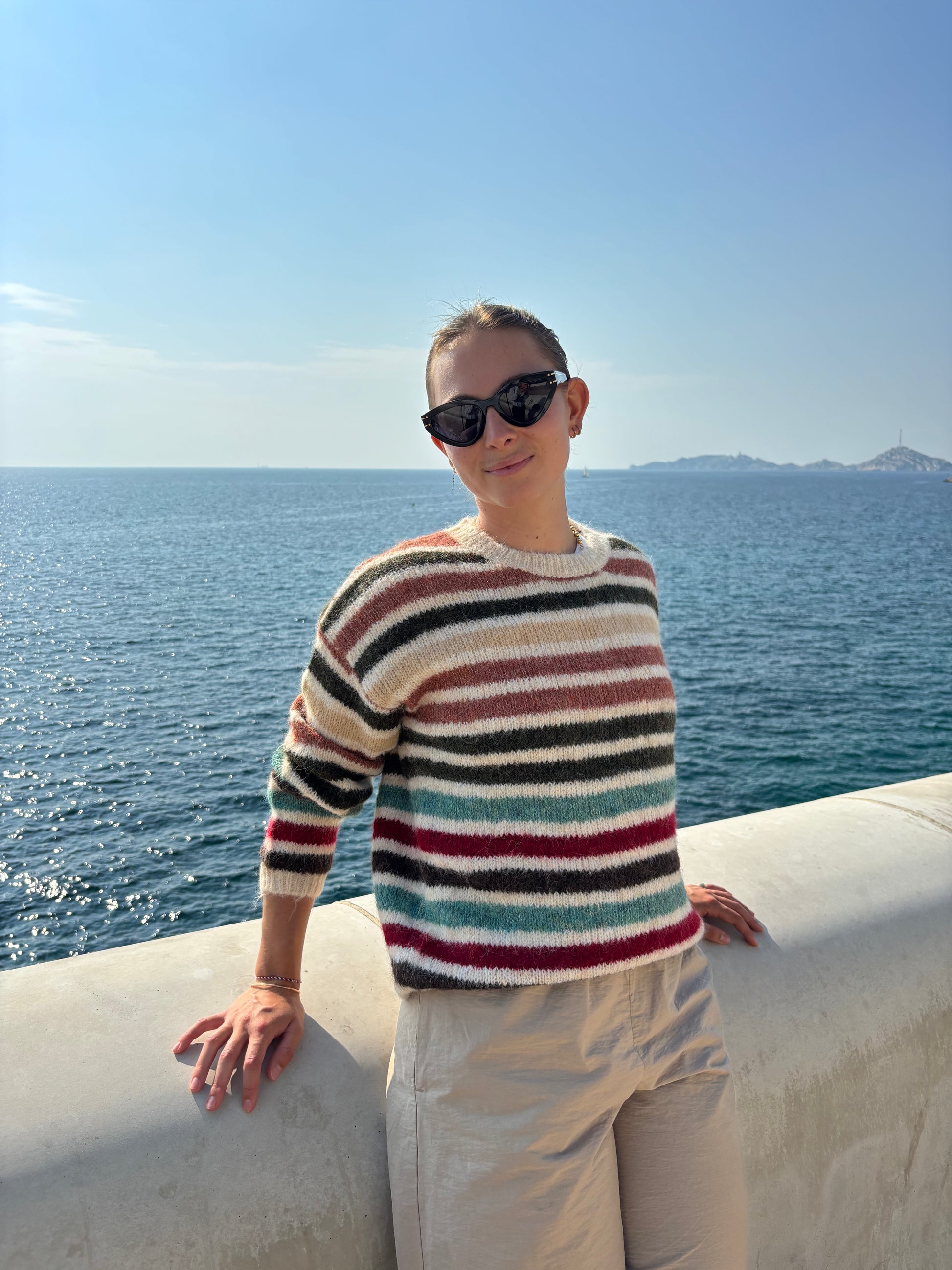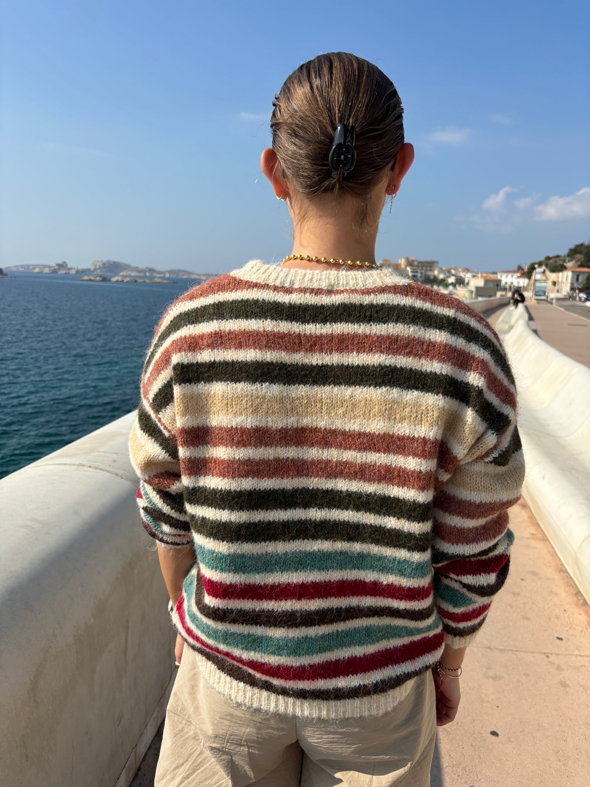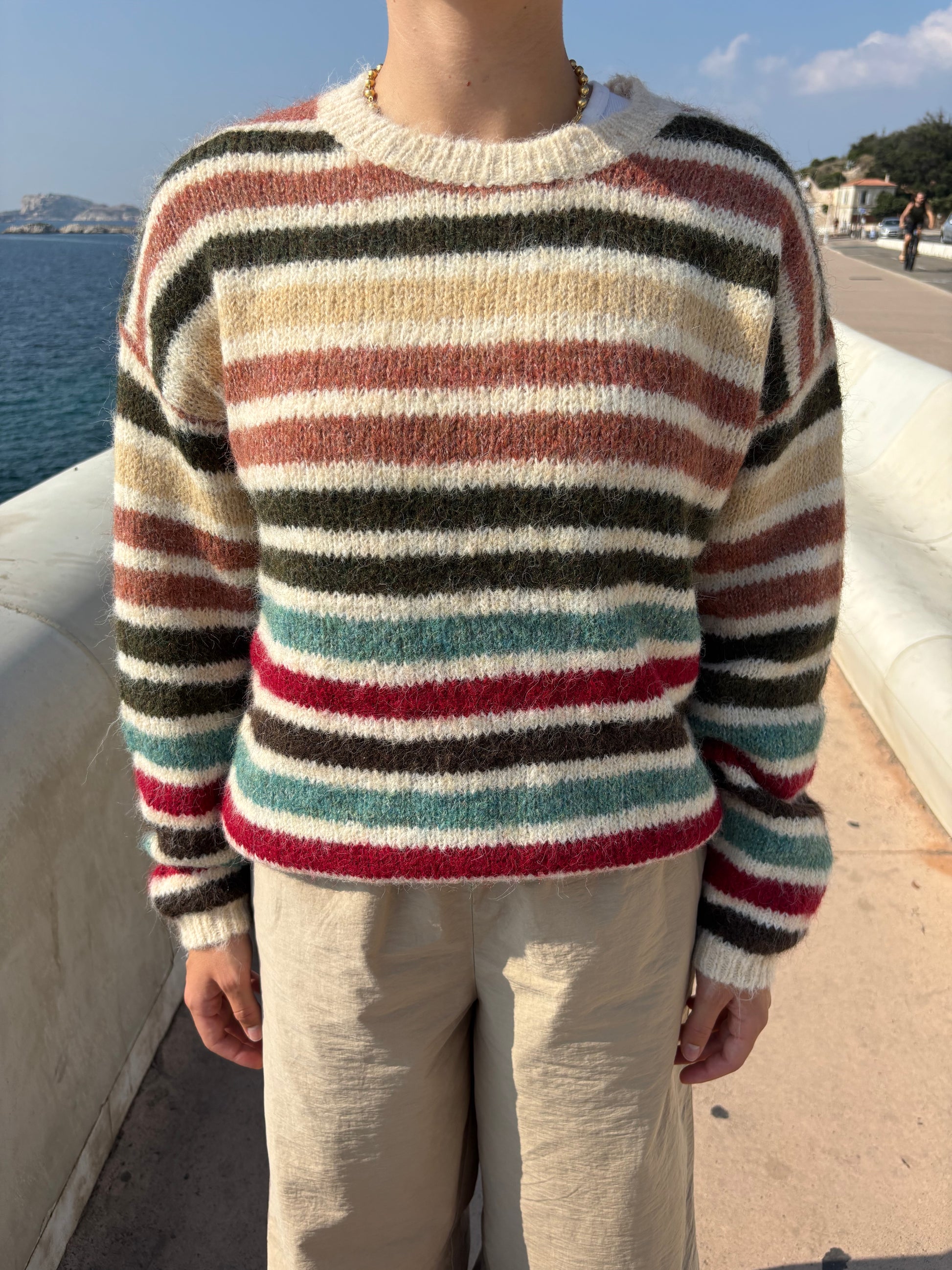 - Motifs : Rayures horizontales multicolores