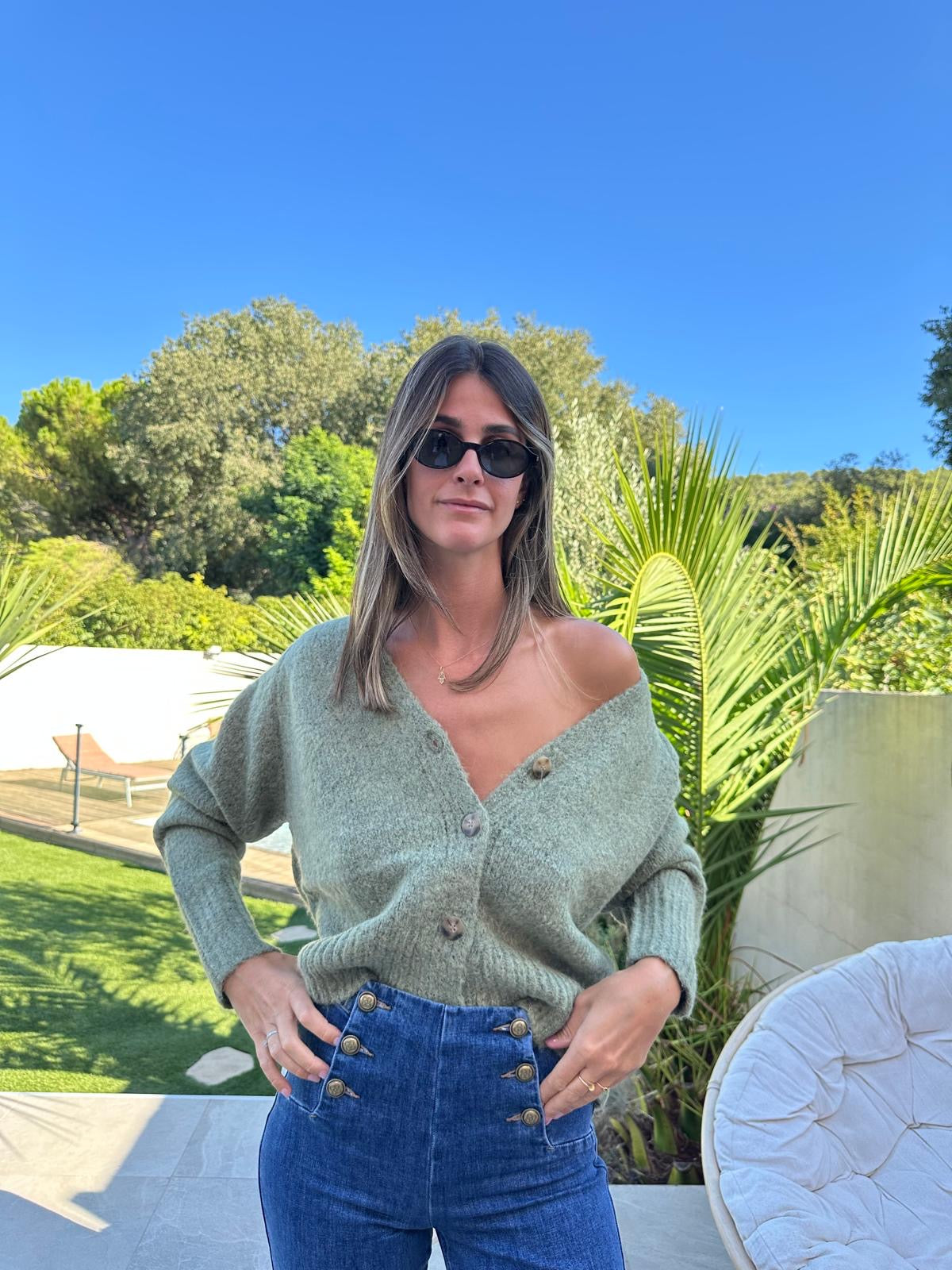 Craquez pour ce magnifique cardigan en maille tricotée, parfait pour les mi-saisons. Sa couleur vert sauge apporte une touche de douceur et de féminité à votre garde-robe.