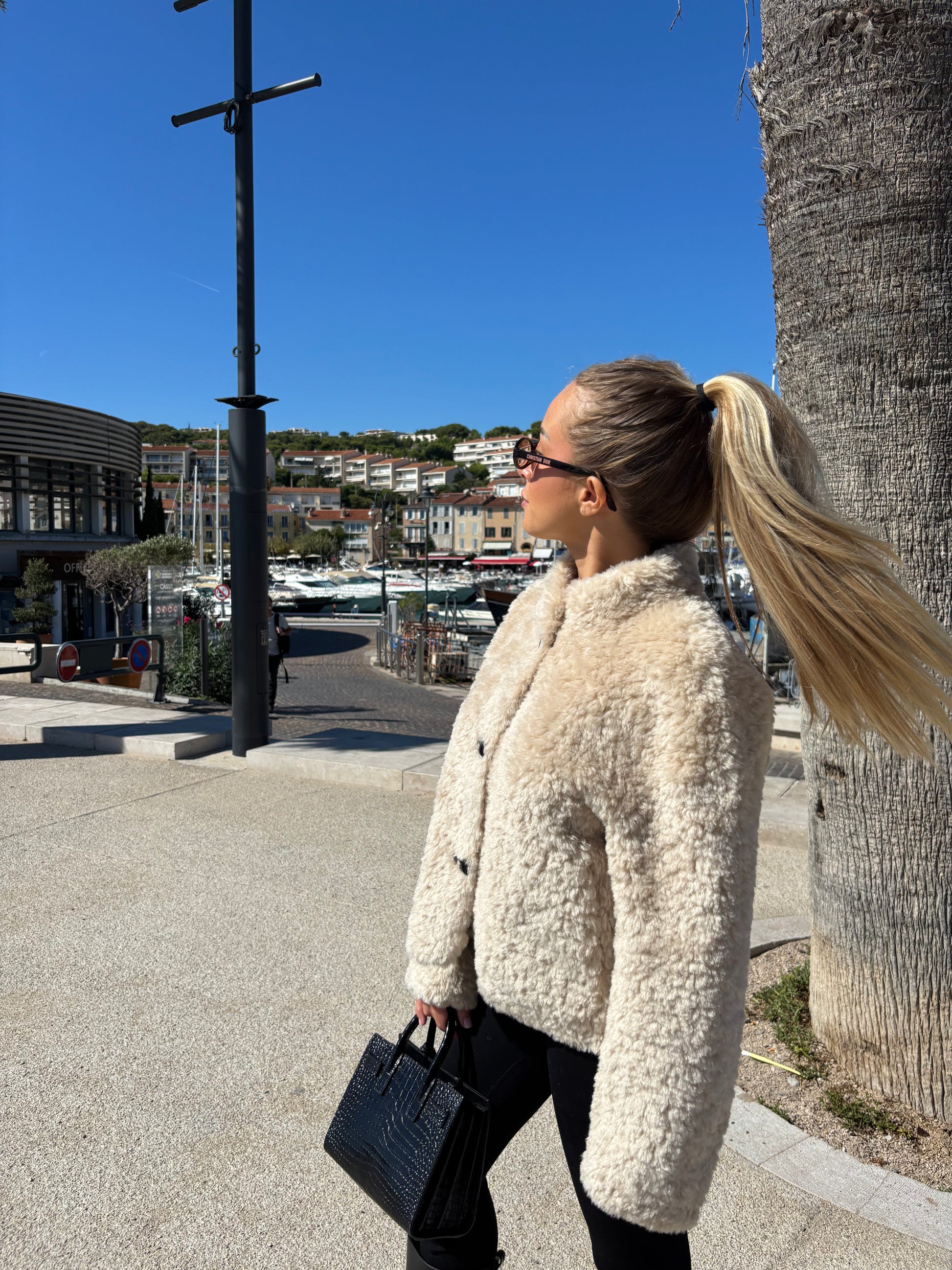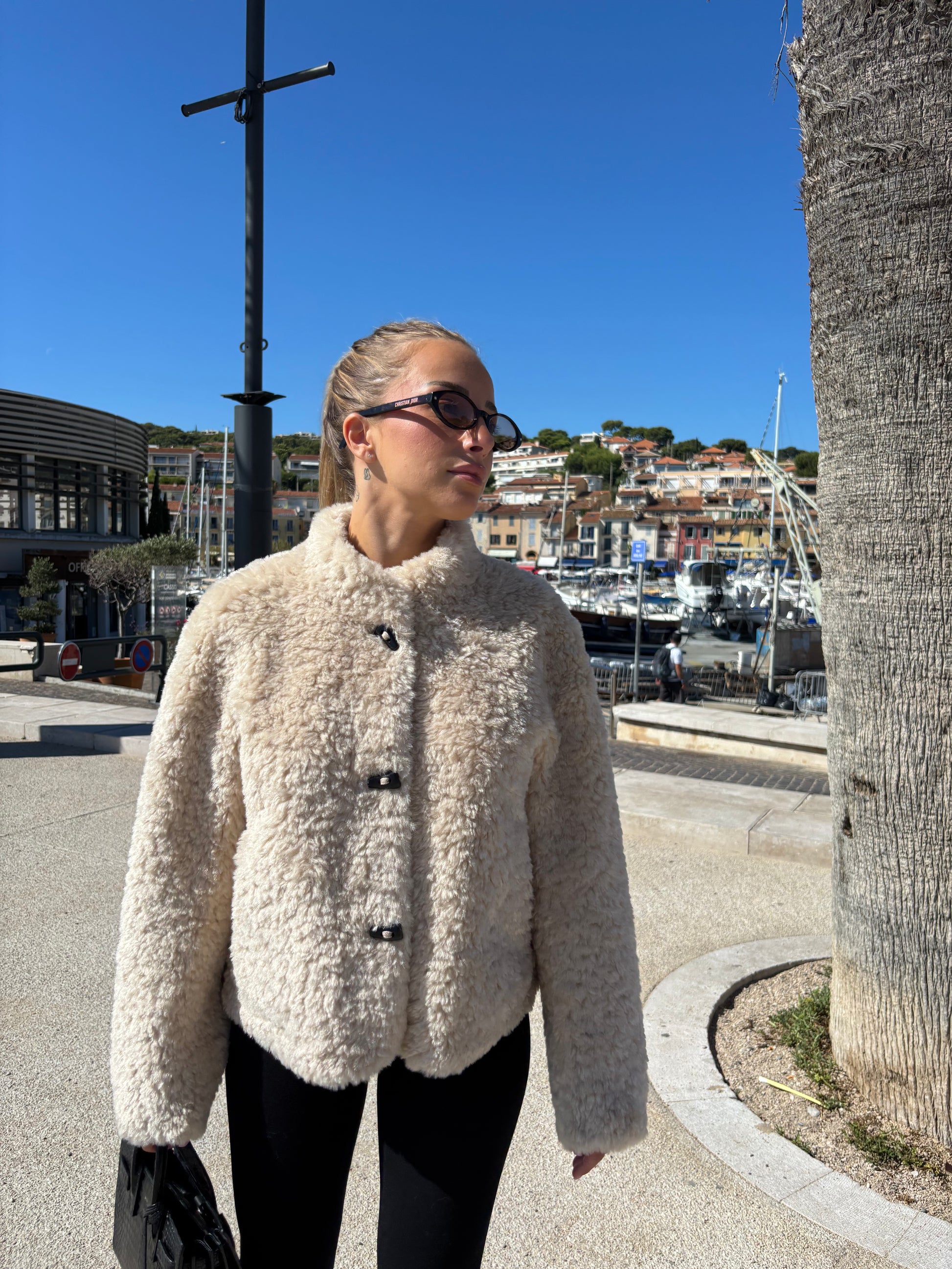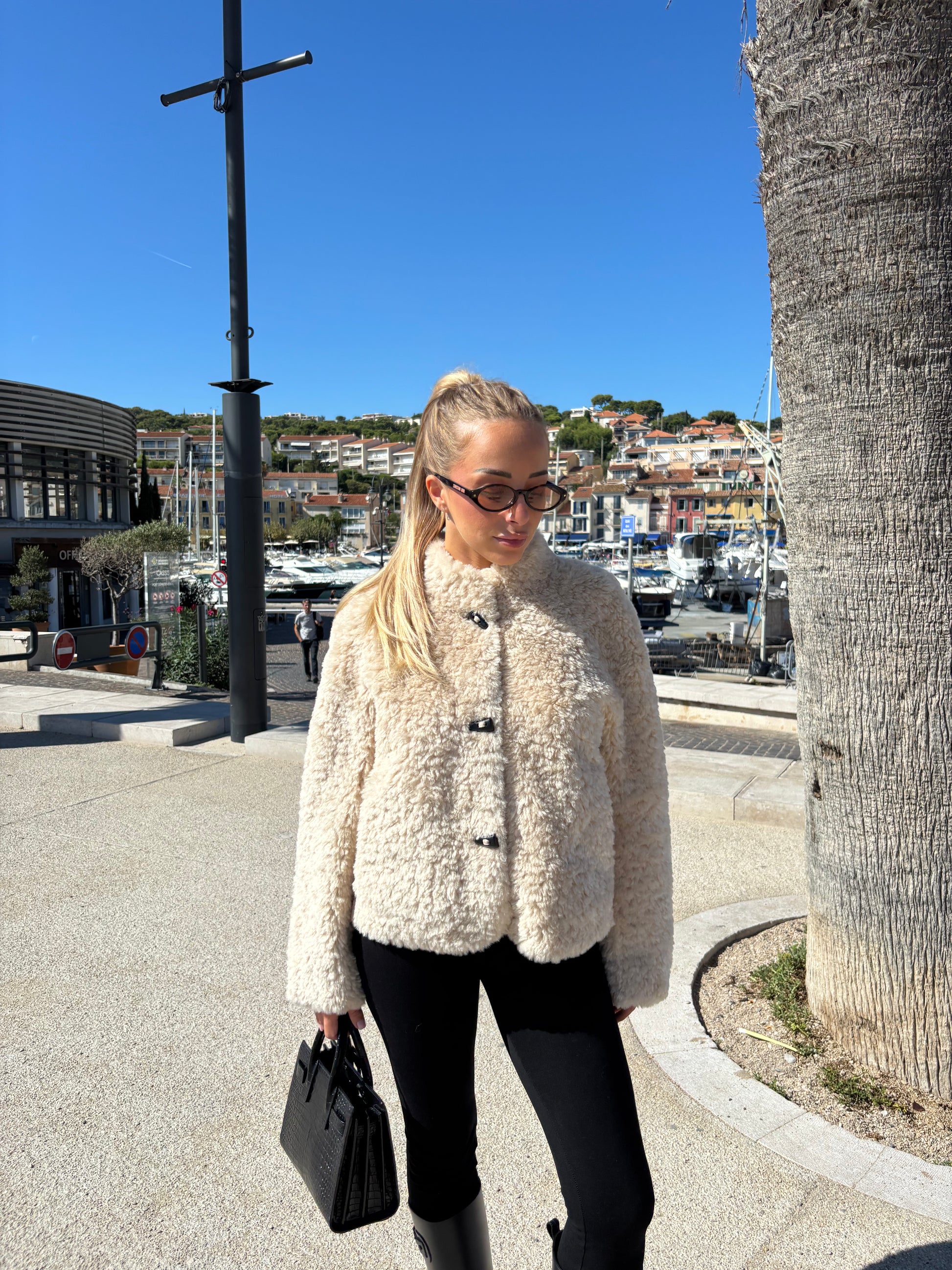 - Matière : Fausse fourrure écru bouclée épaisse
